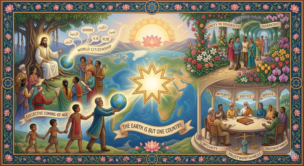 Bahá’í writings describe the current era as the “collective coming-of-age” of the human race. Just as an individual matures from childhood to adulthood, the Bahá’í perspective suggests that nations must mature from isolation and competition toward a cooperative global commonwealth.