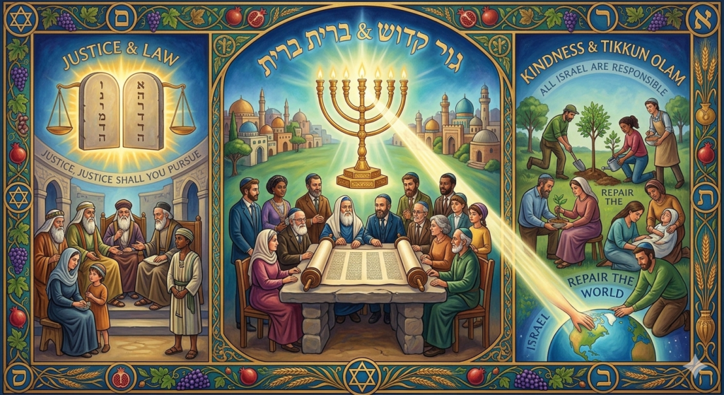 • Light Unto the Nations: Isaiah 42:6 describes the role of the people as a “light unto the nations” (Or L’Goyim). This suggests that the character of the nation should serve as a moral compass for global civilization.