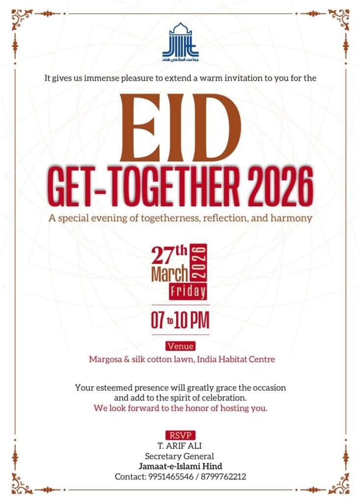 आज जमात-ए-इस्लामी हिंद द्वारा आयोजित ‘ईद मिलन’ कार्यक्रम में सुप्रसिद्ध आध्यात्मिक गुरु ध्यानाचार्य डॉ. अजय जैन ने शिरकत की । इस अवसर पर उन्होंने समाज के विभिन्न वर्गों और धर्मों के बीच आपसी सौहार्द बढ़ाने पर बल दिया ।