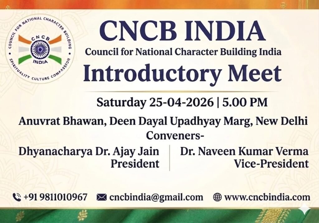NEW DELHI – The Council for National Character Building (CNCB) India is set to host its first major conference, titled “Introductory Meet,” on Saturday, April 25, 2026 at 5 pm.